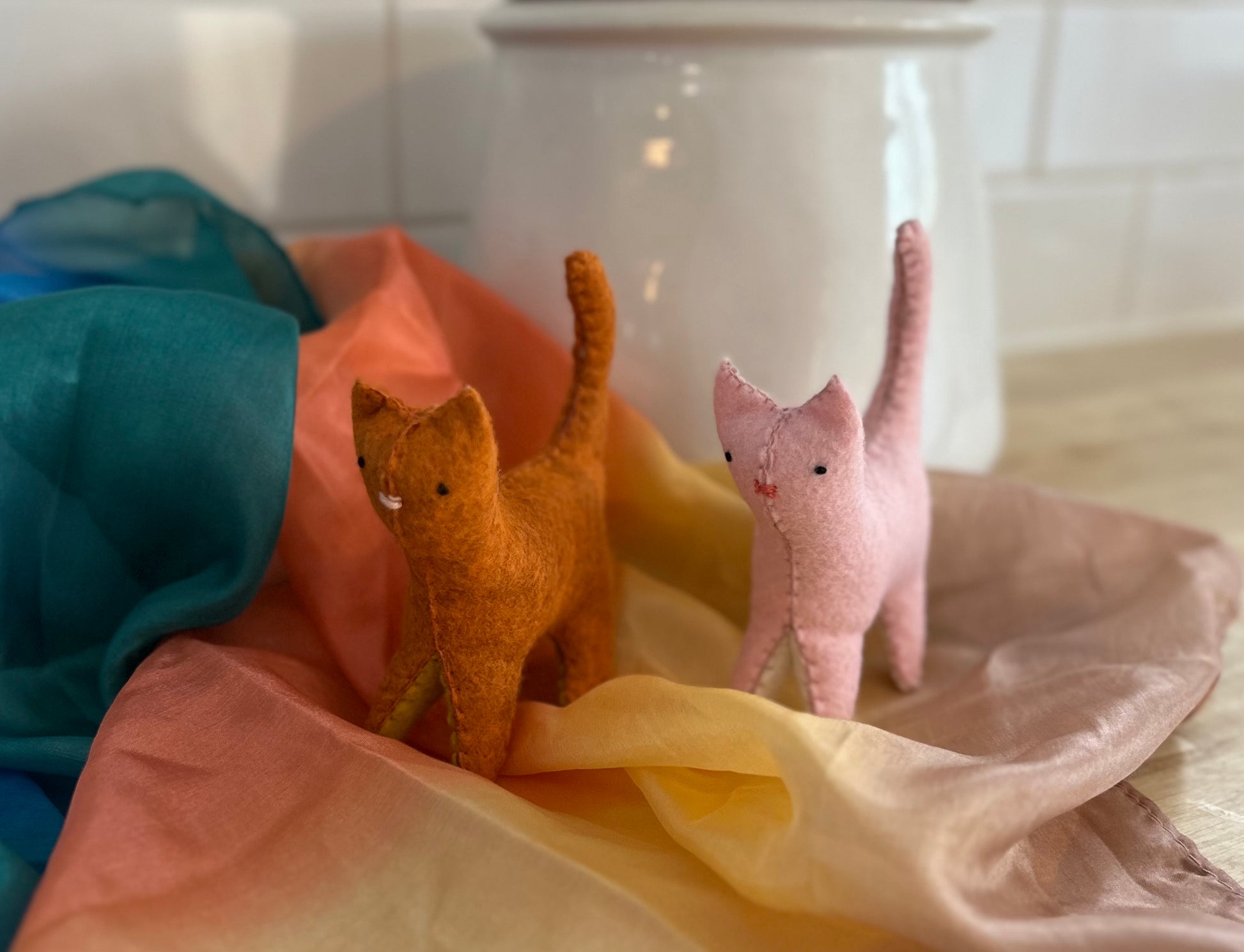 This hand-sewn, colorful, felt Waldorf cat is a soft and adorable companion designed especially for children. Its cuddly body and cheerful colors make it perfect for imaginative play, snuggles, and sparking joy in little ones and cat-lovers alike.